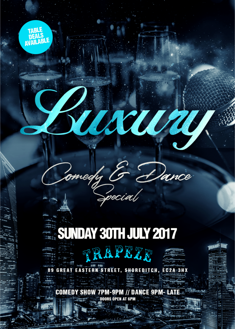 Limited £12.50 TICKETS!!! ONLY 1 BOOTHS LEFT !!!! 07599908709 Expect a full house please arrive early!! LUXURY BRINGS YOU A NIGHT OF LAUGHER AND EXCITEMENT. COMEDY SHOW (7PM - 9PM) ───────...